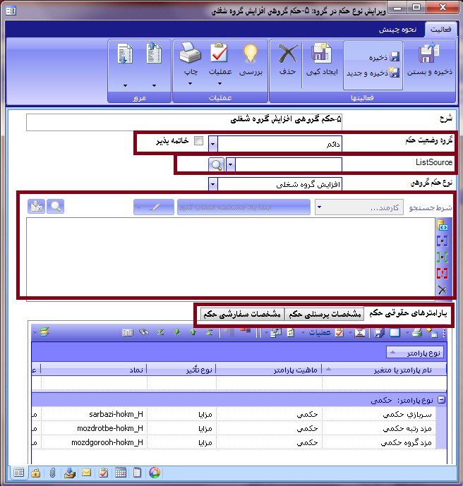 - تعیین فرمول برای مشخصههای پرسنلی خاص نوع حکم گروهی