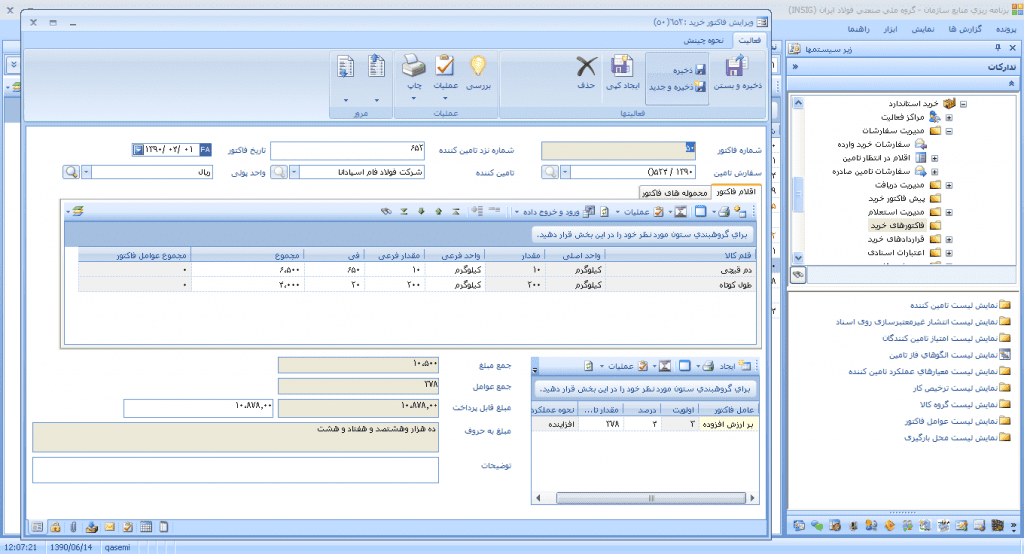 • امکان درج پیش فاکتور و فاکتور خرید در سیستم و درج دستور پرداخت در سیستم خرانه داری.