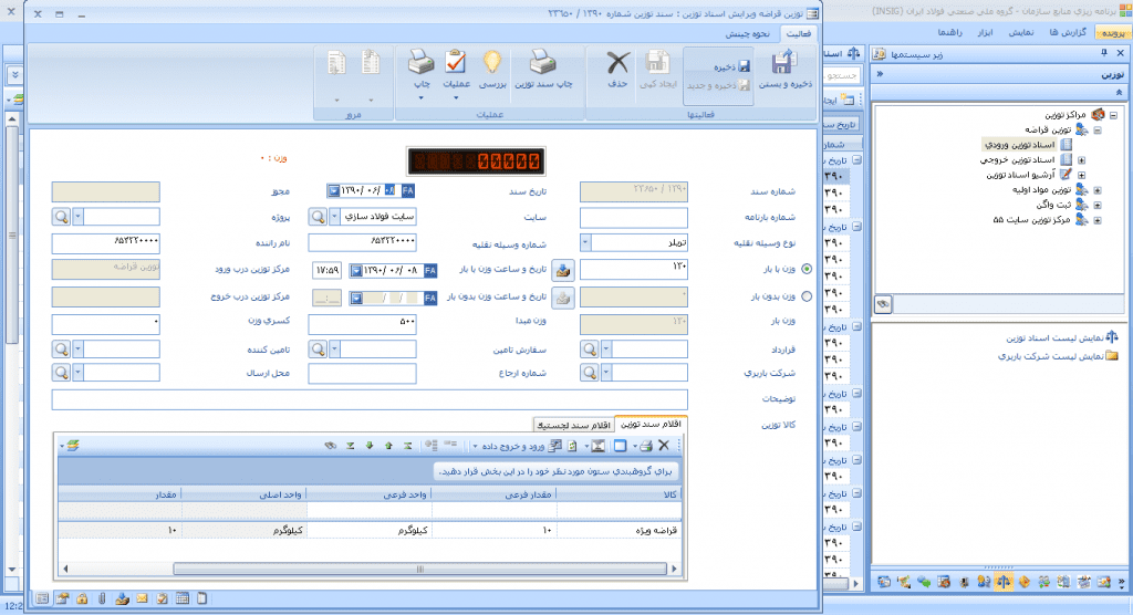 - امکان استفاده جهت رسید اقلام غیر خریدنی مانند ضایعات خطوط تولید با درج سند توزین در رسید انبار مربوطه