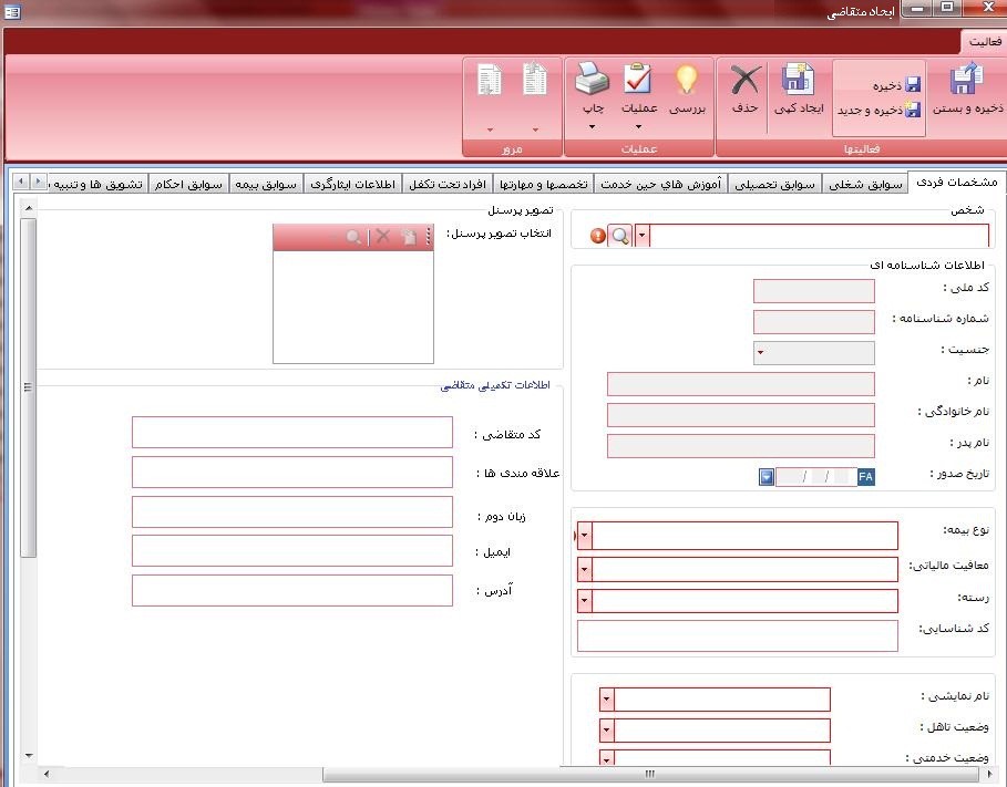- ثبت اطلاعات فرمهای درخواستی متقاضیان استخدام