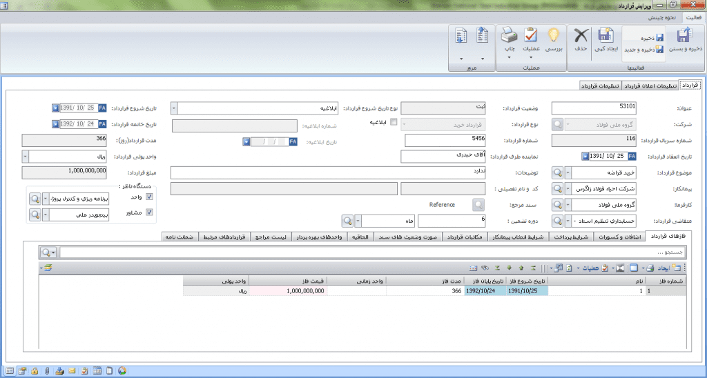 - امکان درج واحد ناظر و همچنین مشاور قرارداد.