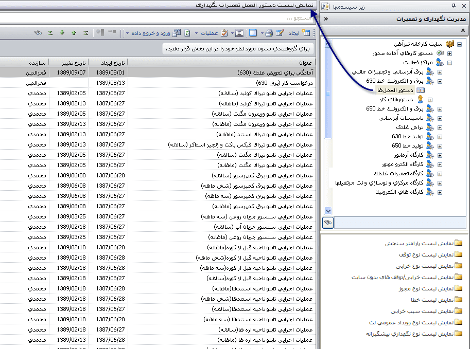 - مدیریت دستورالعملهای مراكز فعالیت انجام دهنده دستور كار هر یک از سایتهای نگهداری و تعمیرات