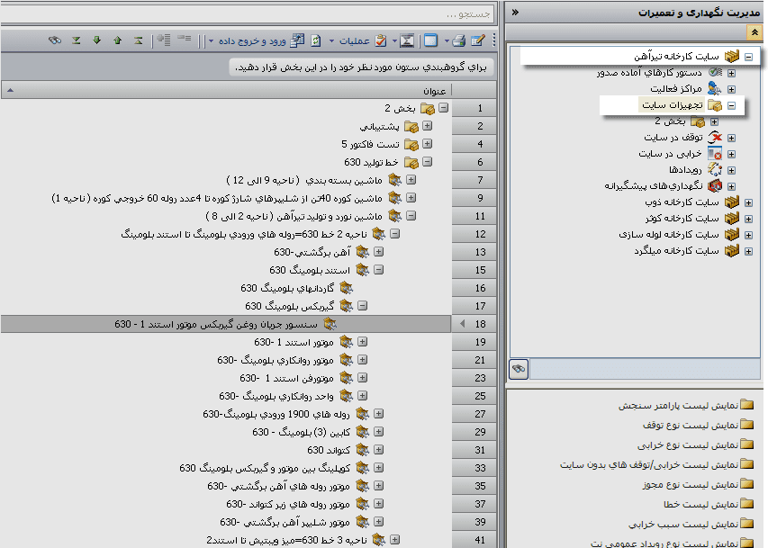 - مدیریت تجهیزات فنی مفهومی و سریالی هر یک از سایتهای نگهداری و تعمیرات