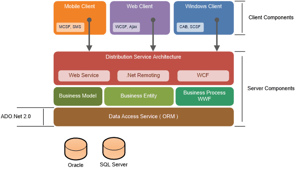 - براي ارتباط مابين ايستگاههاي كاري و Application Server از مكانيزم Remoting بر روي بستر TCP/IP استفاده شده است، بنابراين تنها ارتباط لازم بين ايستگاه كاري و Application Server فقط يك شبكه TCP است.