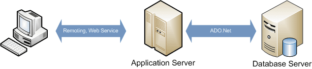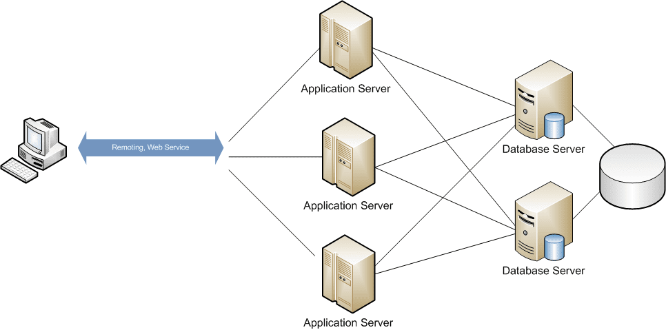 براي كاربردهاي معمولي با تعداد Client كم (بطور عمده Smart Client) كليه بخشهاي نرمافزار بر روي تمامي Clientها Deploy ميشود و هر Client بطور مستقيم قابل اتصال به بانك اطلاعاتي ميباشد. اين راهكار براي سازمانهاي كوچك با تعداد كاربر كم مناسب میباشد.